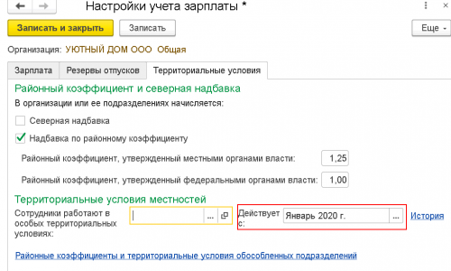 Обратите внимание территориальные условия указаны с марта 2020 г., а больничный рассчитывается в январе 2020. Исправьте в настройках программы период с которого применяются территориальные условия — с января 2020