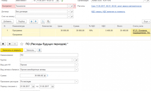 2. Да, все верно у вас в обоих случаях право на лицензионное ПО. Приобретение ПО оформляете документом Поступление (акты, накладные). В колонке табличной части «Счета учета» вы указываете счет 97.21 «Прочие расходы будущих периодов» и настраиваете справочник «Расходы будущих периодов».