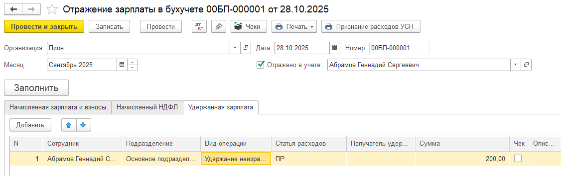Поэтому на сумму удержания можно провести Документ Запись книги доходов и расходов УСН в 1С , а записи в регистрах УСН не вводить.