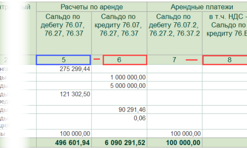По вашему предыдущему скрину части расшифровки я так понимаю у вас заполняются только графы 5, 7 и 10 в части расчета авансов по аренде. Т.е. попадают только данные по 76.07.2, без учета 76.07 в целом?