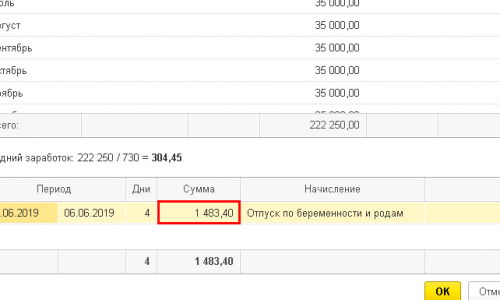 Как в базе заполнить данные, чтобы расчет отпуска по по беременности и родам составил 221,25*140=30975