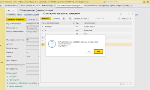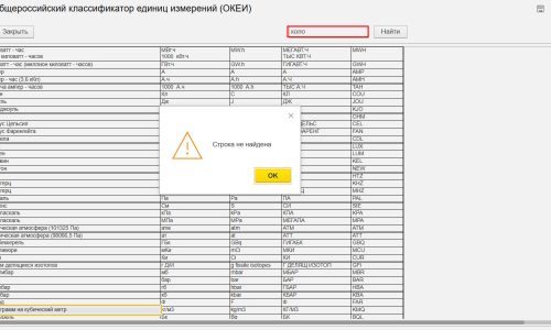 Если мы будем пробовать подбирать нужное значение по кн. Подбор из ОКЕИ, то поиск вернет пустой запрос.