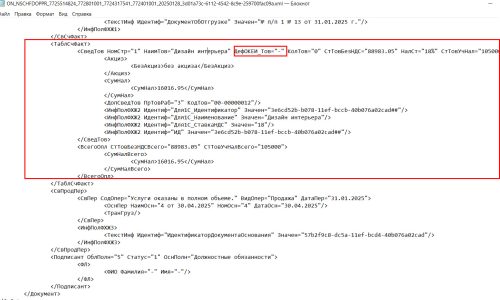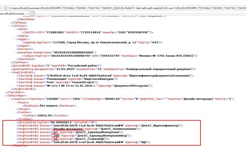 А вот второй вариант, когда формируются данные для передачи в СБИС из 1С для единицы измерения «шт».