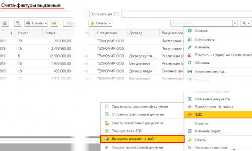 Поэтому в меню ЭДО для документа «Счет-фактура выданный» эта команда, что вам нужна — отсутствует. Но для ее подключения требуется совсем маленькая доработка.