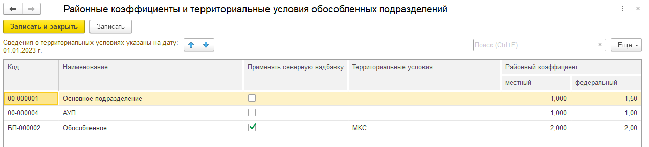 Добрый день! Проверьте, пожалуйста, в разделе Зарплата и кадры — Справочники и настройки — Настройки зарплаты — Порядок учета зарплаты, может быть периоды работы в территориальных условиях прерывались: