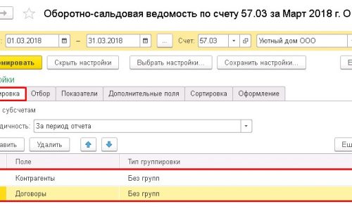 Добрый день! Скорее всего у вас по ошибке суммы проходят по разным контрагентам или договорам. Сформируйте, пожалуйста, ОСВ по счету 57.03 с настройкой группировки по контрагентам и договорам, я прикрепила в скрине, как должна быть группировка настроена, и пришлите скрин отчета, чтобы я могла более точно увидеть ошибку и сказать, как поправить. И желательно еще карточку счета за тот же период.