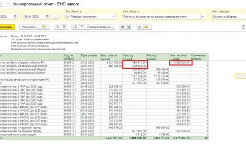 Операции по ЕНС в 1С