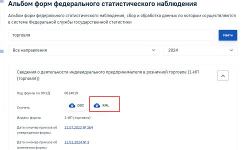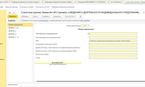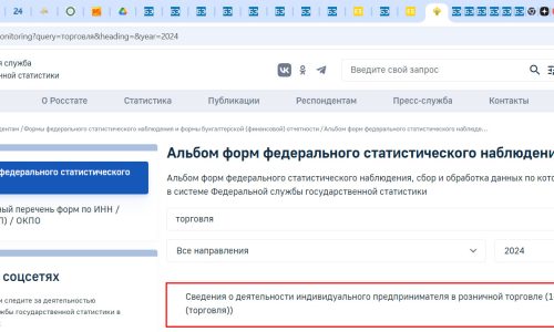 После загрузки файла актуальная новая форма ИП -1 торговля появится в списке стат. отчетности.