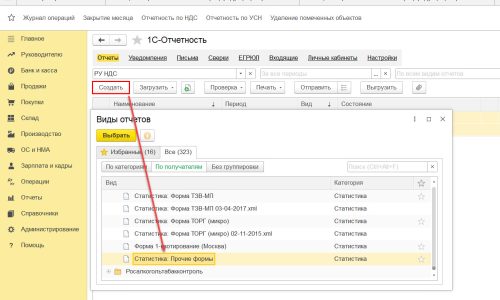 После этого подключите новый отчета: 1С Отчетность — кн. Создать, встать на строчку Статистика Прочие формы.