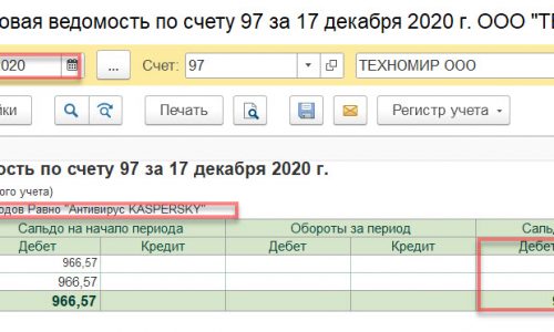 Вот у меня программа Антивирус Касперского дает сумму учетную по остатку на 17.12.2020, когда я делаю инвентаризацию 966, 57 руб. по ОСВ-97