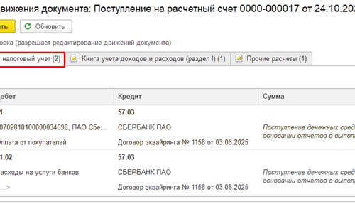 Нашла, что именно документ Поступление на рс тянет документы ОРП за 2024г. Хотя перезакрытие месяцев за 4 кв24г тоже сделала(ранее периоды закрыты), по факту переходящих остатков за 24 на 25 нет, но в регистре Прочие расчеты они есть. Можно ли эти хвостики с 24 года зачесть как то? Поэтому, наверное, и сумма эквайринга ложится в КУДиР с НДС.