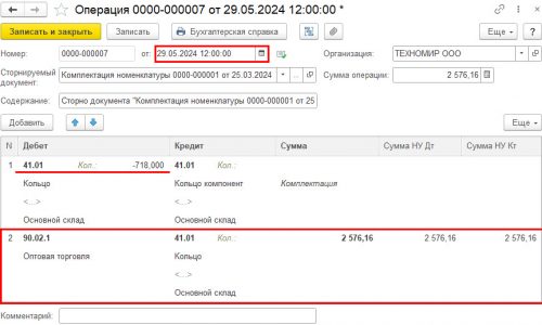 Здравствуйте! По ошибке в документе комплектация номенклатуры (Бухгалтерия предприятия КОРП, редакция 3.0 (3.0.135.22) переводили одну номенклатурную единицу кольцо колодца в кольцо колодца пп, ошибка произошла в количестве из 2 колец сделали не 2, а 720. Соответственно цена за кольцо стала не 1 291,67р , а 7,18р. Данный документ проведен 23 марта 2023 года. А 24 марта эти 2 кольца продали по 7,18. Как провести корректировку и исправить корректно комплектацию и получается реализацию 1 квартала
