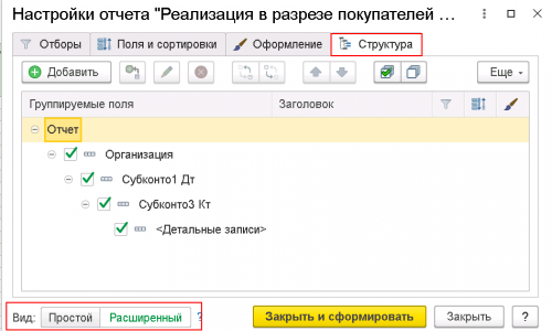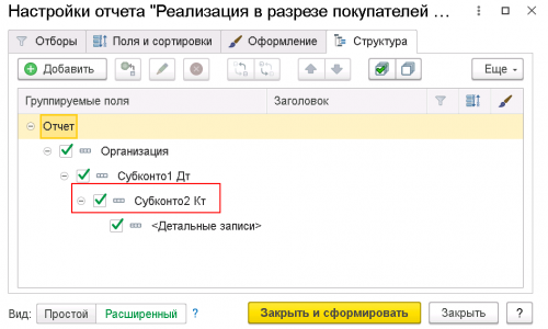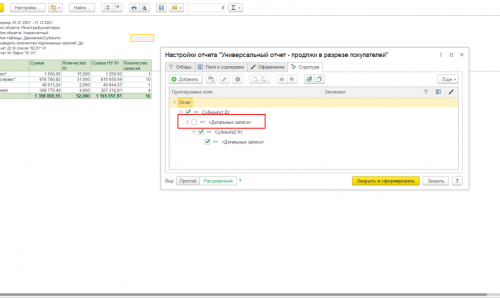 Приведите скрин всех вкладок настройки отчета