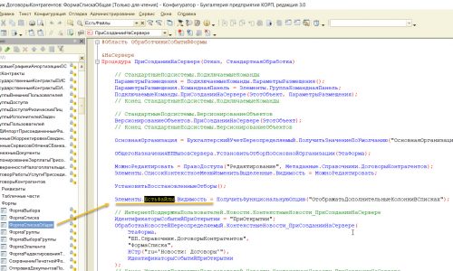 Без доработки кода отобразить колонку «Есть файлы» в списке договоров справочника Контрагенты не получится.