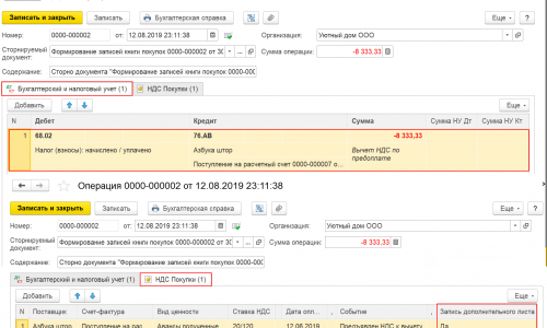 Ирина, необходимо оформить документ Операция, введенная вручную, с видом операции «Сторно документа». В поле сторнируемый документ выберите документ Формирование записей книги покупок за 2 квартал. На вкладке Бухгалтерский и налоговый учет оставьте только запись по ошибочно зачтенному авансу, остальные удалите. На вкладке НДС Покупки в поле Запись доп. листа поставьте -Да. В поле Корректируемый период укажите любую дату из второго квартала. Сформируйте Корректировочную Декларацию по НДС за 2 кв. 2019 г