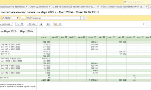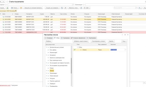 Практически все счета прошлых периодов не оплачены, но отгружены.