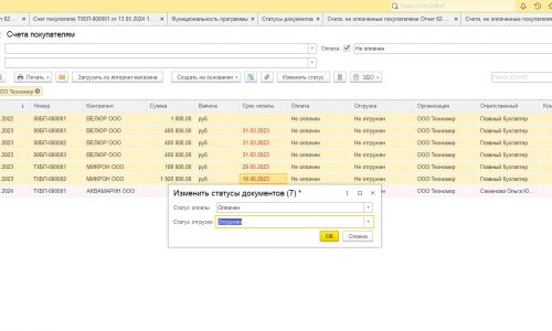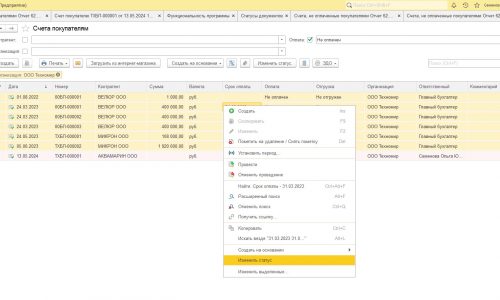 А можно более быстро изменить статусы прямо в журнале счетов на оплату.