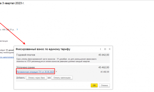 У нас УСН «Доходы-расходы» и мне не нужно сейчас уплаченные фиксированные взносы ИП учитывать в расходах. Пусть это будет в срок по НК. Мне бы просто хотелось , чтобы в «Задачах организации» подтянулся платёж этих взносов (платёжку делала НЕ из «Задачи организации»)