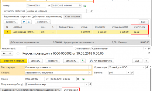 Второй документ Корректировка долга