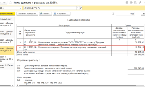 Расходы на таможенные платежи при УСН в 1С