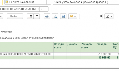 — Регистр накопления — Книга учета доходов и расходов (раздел 1)