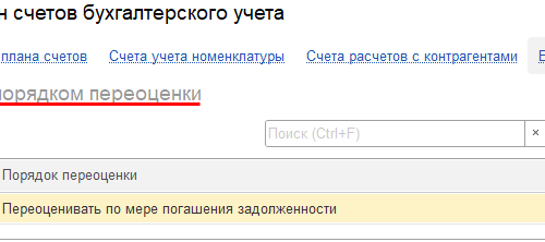 Настройте новый счет по рисунку выше и внесите его в список счетов с особым порядком переоценки (рис.)
