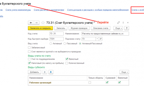 1. В рабочем плане счетов создайте счет 73.31 (рис. )