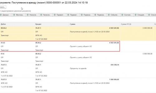 На учет ОС 01.03 принимаем в сумме 5000 000 минус проценты по дисконтированию ( 434 358,14) — 4 656 641,86 руб.