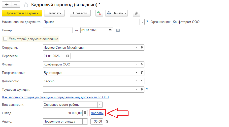 До 01.01.2026 в программе в карточке сотрудника в окошке «оклад» добавляли сумму премии, для того чтобы при начислении в документ «начисление ЗП» подтягивался код премии, который с 01.01.2026 г поместили в архив.