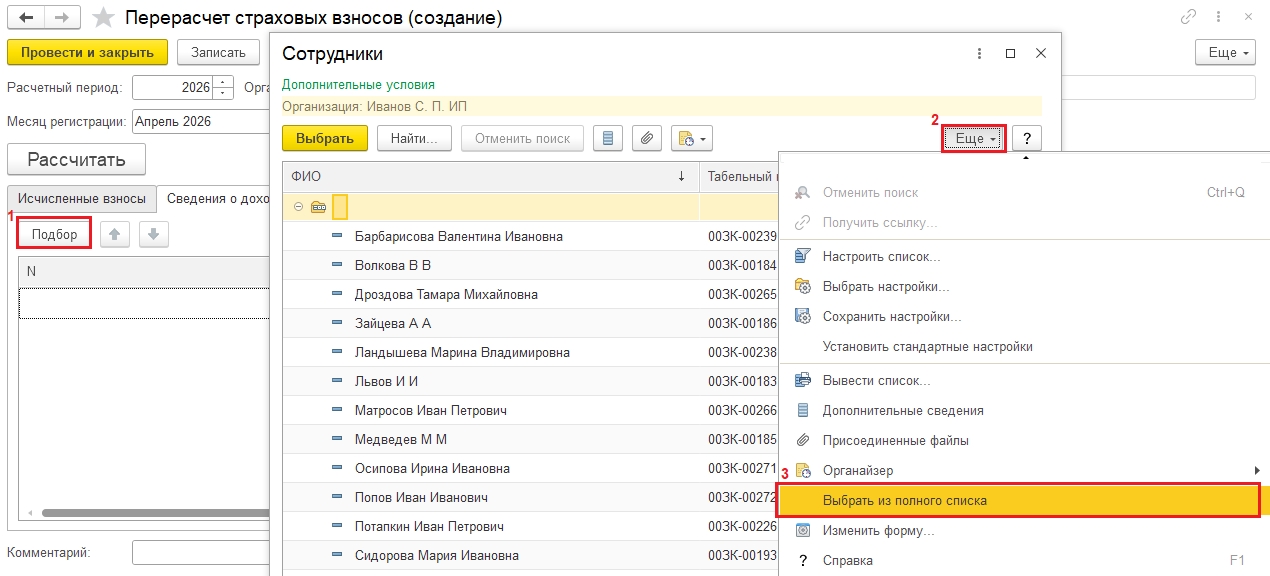 3. Начисление страховых взносов можно провести документом Перерасчет страховых взносов. В этом случае необходимо заполнить закладку Сведения о доходах, где указать начисленную сумму дохода и нажать Рассчитать, программа рассчитает с неё взносы.