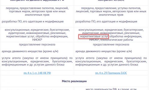Добрый день! Все-таки читаю пп. 4 п. 29. Местом реализации этих услуг признается территория государства-члена ЕАЭС, налогоплательщиком которого услуги приобретаются, и все. А в табличке, которую вы мне сбросили, еще графа, где приобретается, в РФ или не в РФ. Чем можно это обосновать?