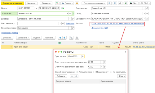 Предоплата и отгрузка товаров в счет аванса в 1С