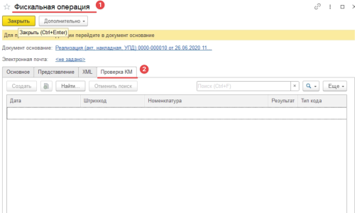 Чек ККТ пробитый из документа Реализация отражается с ошибкой в 1С
