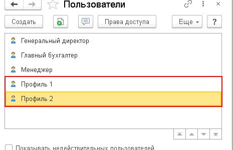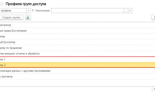 Я пробую создать в Профилях групп доступа Профиль 1 и Профиль 2 из того, что можно подцепить в права.