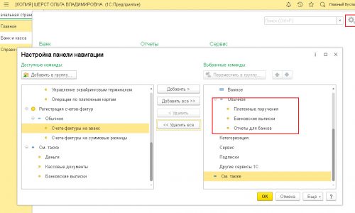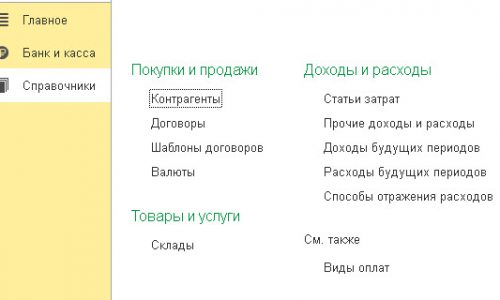 И раздел Справочники тоже бы настроила. Например, оставила бы Контрагент, Договор, Валюты, Склады, остальное можно удалить.