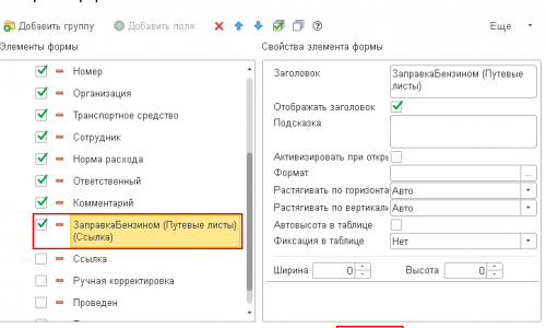 Добрый день, можно ли в настройку формы путевых листов добавить (вывести) заправку бензином количество литров?