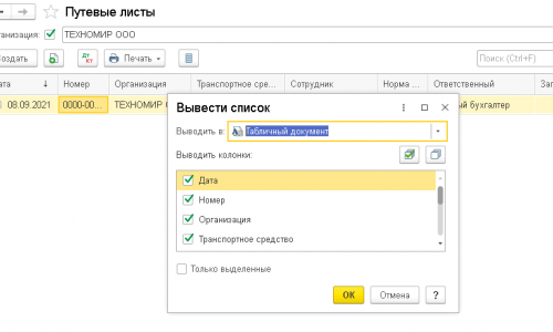 Путевые листы с 2021 года в 1С — образец