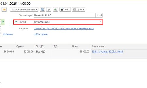 Нужно работать в этой базе с 2025 г., на данный момент работа ведется. Грузоперевозки (патент — основной вид деятельности) + УСН, но для работы все равно нужно все настроить.