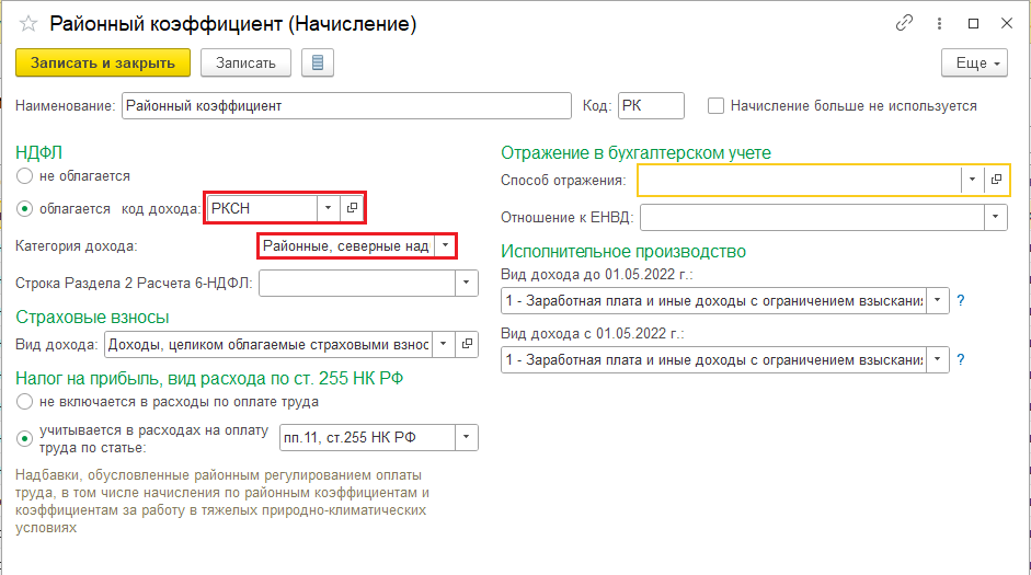Добрый день! Проверьте, пожалуйста, в разделе Зарплата и кадры — Справочники и настройки — Настройки зарплаты — Расчет зарплаты, правильно ли установлены настройки по НДФЛ у начисления Районный коэффициент: