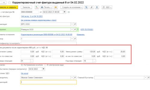 Корректировочный счет-фактура/ повторный корректировочный счет-фактура, регистрируется в Книге покупок в том налоговом периоде, в котором произведено изменение стоимости с кодом 18.