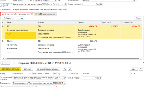 3. Корректируете Акт, полученный от энегросбытовой компанией документ Операция, введенная вручную, операция — Сторно документа минусуете затраты на сумму за энергоснабжение другого собственника (у меня 5 084,75 руб.) и на такую же сумму вводите запись Дт 76.09 Кт 60.01 только в БУ.