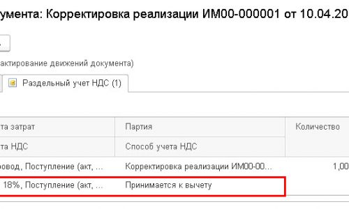 Проблема в том, что при корректировке реализации, если используется раздельный учет -Документ не формирует в регистре Раздельный учет стоимость НДС по этой номенклатуре, а считает его распределенным.