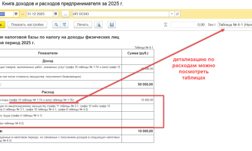 В книге доходов и расходов можно посмотреть Отчет — Книга доходов и расходов ИП.