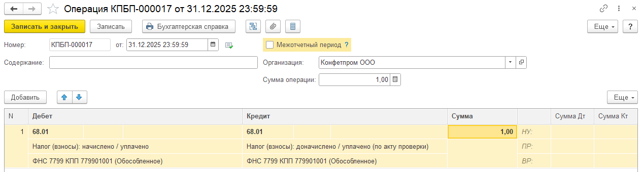 Добрый день! Помогите, пожалуйста, разобраться. В 2025 году из-за перерасчетов дохода с РКСН на основную налоговую базу у уволенных сотрудников образовался неудержанный НДФЛ из-за вычетов. В конце года 31.12.2025г. в ЗУП провели операции учета НДФЛ — передано в налоговый орган. При отражении ЗП в бухучете на 68.01 появилась дебиторская задолженность отдельной строкой (см.файл). Какие операции еще необходимо провести, чтобы закрыть дебиторскую задолженность и каким числом? Или она так и будет отображаться?