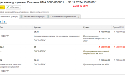 Дт 05 Кт 91.02 1 700 000 руб. начисленная амортизация за 2022, прошлый период, БФО подписано