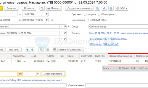 Импорт товаров из дальнего зарубежья. Предоплата в валюте 50% в 1С .