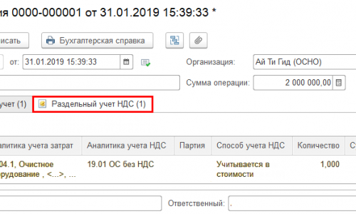 На вкладке Раздельный учет НДС (рис.3) удалите лишнюю строку. Программа сама создала запись по регистру, что нам и было нужно.