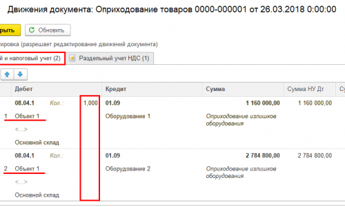 по Дт сч. 08.04.1 субконто 1 Номенклатура — Название объединенного актива;