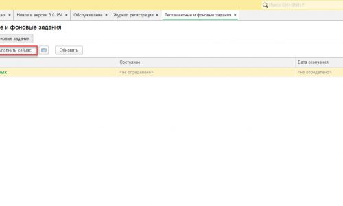Также можно запустить принудительно регламентную операцию Обновление областей данных, которая должна выполняться после каждого обновления автоматически.