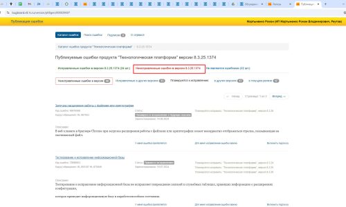 Посмотрела ошибки Платформы 8.3.25.1374, вы можете это сделать тоже по ссылке: